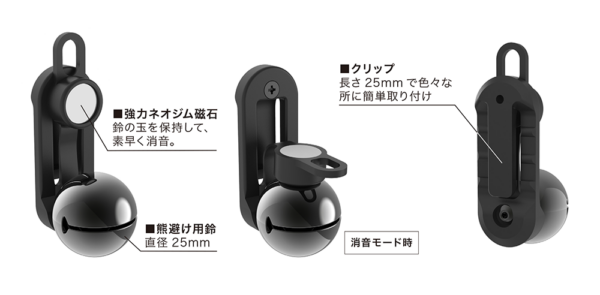 磁石によって鈴のON-OFFをワンタッチで素早く行うことができます。